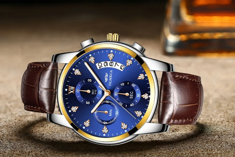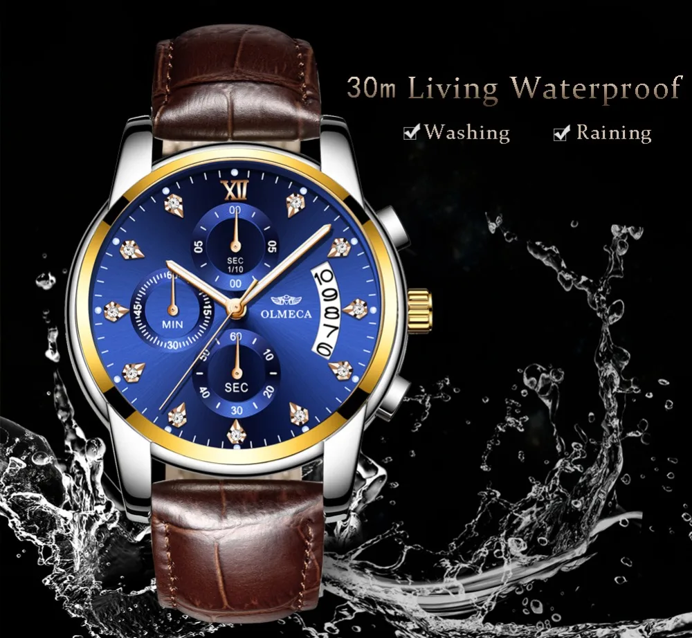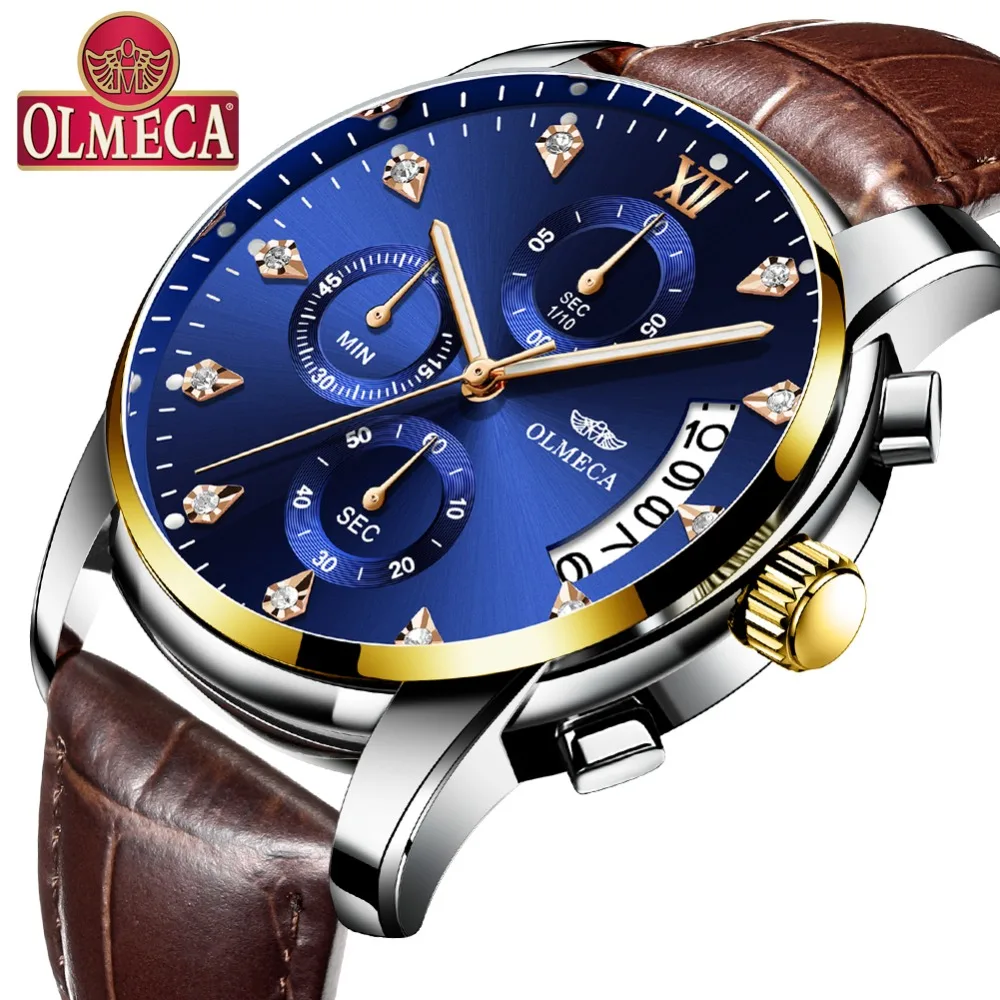 OLMECA Men Watches 2019 Brand Luxury Quartz Watch Leather Strap Wristwatch Fashion Waterproof Male